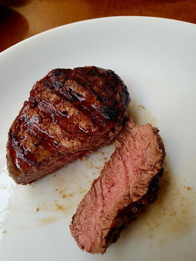 Já minha experiência com o prato principal foi insatisfatória. Carne bem temperada, mas muuuito dura e o arroz não veio muito quente. O prato da minha esposa custou metade do valor do meu e veio bem melhor.