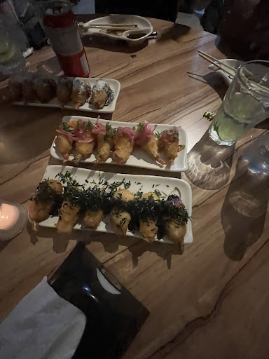 A comida estava boa, no geral, bem fresca e bem feita, com algumas exceções. O empanado de camarão praticamente só tinha massa e o atum não estava tão bom quando fomos. E os sushis em geral, vêm com muito molho tarê (que não gosto).