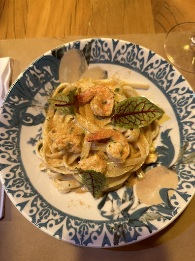 3-Pedi o prato “ Fettuccine gamberi & bottarga”. Pela descrição e preço cobrado, espera-se que venha uma quantidade razoável de camarões. Mas dava pra contar o número de micro camarões: APENAS TRÊS micro camarões e pouquíssimos pedaços de camarão no meio do macarrão. Decepcionante.