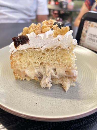 Read moreCheguei bem cedo para aproveitar o café da manhã e fui prontamente recepcionado pelos donos do estabelecimento, que me apresentaram o café e, com entusiasmo, me disseram sobre todo o conceito do ambiente. Amei a decoração e a coleção de pratos e xícaras de porcelana pintados à mão expostas próximo às mesas. Todo o lugar remete ao clima aconchegante de um lar, de uma reunião na casa de um ente querido ou de um amigo para tomar um café, comer um bolo e papear um pouquinho. O fato de o restaurante não priorizar a conectividade virtual e os aparelhos eletrônicos faz com que todo o ambiente tenha o clima caloroso de um ponto de encontro entre seres humanos e não de um escritório cinza para trabalho e negócios. Os atendentes são muito atenciosos e amigáveis, exatamente o que se espera de um ambiente tão doce e familiar. É difícil dizer qual foi a melhor coisa que experimentei ali hoje, mas acredito que tenha sido o café coado à mesa e a empanada - que não estão na foto, só indo lá mesmo para ver e provar. Ainda pretendo voltar muitas vezes mais para conhecer mais itens do cardápio e ter um tempo de qualidade com pessoas queridas. Meus parabéns a todos que fazem parte do Mais Uma Fatia e muito obrigado pelo ótimo café da manhã que vocês me...