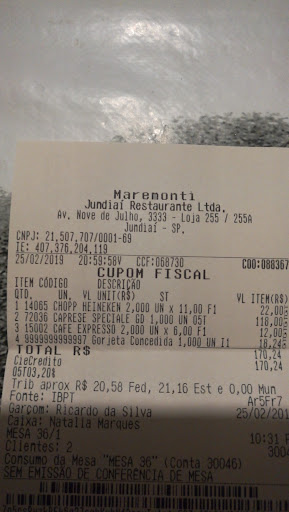 Read moreDomingo fui jantar no Jundiaí Shopping escolhemos este estabelecimento, pedimos uma pizza. Comida muito boa mas na hora de pagar a conta o gerente veio cobrar, segundo ele a máquina não havia passado mas mostrei que no extrato do banco houve debitado da minha conta ele insistiu que eu passasse novamente pois assim cancelaria a operação anterior e sim o estabelecimento receberia. Segui a solicitação dele mas avisando que eu desconhecia esse procedimento. Como eu suspeitava debitou duas vezes o valor da conta, ele solicitou meu contato que na segunda o escritório entraria em contato para devolução, eu não aceitei por ter avisado e solicitei para ele cancelar a operação na máquina, ele tentou várias vezes mas acredito que não obtinha conhecimento. após 20 minutos veio uma moça e ele perguntou se tinha o conhecimento de como cancelava, ela falou fala para ele ficar tranquilo que será cancelado com ar de desdenho. Me levantei com minha esposa e fui embora, o gerente veio atrás e solicitou meu contato que iria resolver, como fiquei muito chateado com a situação falei para eles ficar de caixinha que não precisava passar por toda essa situação. Lugar legal com comida boa mas o atendimento me decepcionou, não pelo valor mas sim a situação e experiência de primeira vez. Não...
