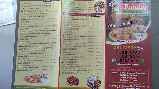 Read moreGostei muito das pizzas. O preço esta bem acessível e grande variedade de sabores. O atendimento das meninas que ficam no balcão (não posso avaliar via whats ou telefone) foi bem bacana e cordial. Recomendo comprar na Rainha pizzas. Somente dois comentários a fazer para melhoria, o tempo de espera foi de uma hora (meu atendimento foi em um sábado a noite, pode ser que outros dias o tempo seja menor) e o catupiry na minha opinião não estava gostoso, acredito não ser catupiry original, porém não afetou no sabor geral da pizza e se vc não liga para marcas não vai ter problema algum. Parabéns e continuem melhorando sempre. Obs: algumas pizzas em alguns dias da semana tem preços...