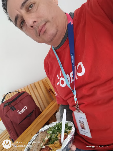 Meus amigos da Claro estão todos dentro do restaurante comendo, só eu que não posso pq eu...