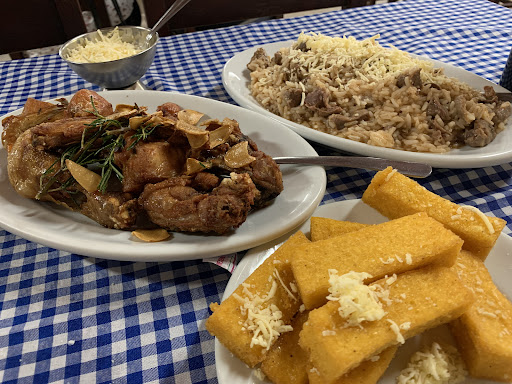 Cozinha italiana, com apelo ao norte da Italia onde o frango com polenta é mais popular que as massas propriamente dita.. Por aqui a sensação é de que temos o poder de visistar o passado. Digo isso porque a tradição se mantém a décadas e pouca coisa mudou no Restaurante Spaindorello, oque é muito bom em minha opinião. Remete a infância, memoria afetiva..casa de vó, almoço em família. Tudo aqui é simples e simplesmente gostoso demais. A experiência já começa ao entrar no sítio, com frondosas e centenárias árvores que proporcionam muitas sombras e garantem ao visitante um refresco ao passear pelo lindo gramado após o almoço e também protegem os carros do sol forte! Depois, você decide aonde quer se sentar! São três opções. O salão interno, que mantém as mesmas características com mobílias azul do bar, mesas tradicionais e toalhas xadrez traz um ar mais formal e intimista. O salão externo é mais arejado, e conta com mesas e bancos grandes que são compartilhados entre as famílias, remetendo às festas populares italianas e quermesses! E o mais disputado e meu preferido lugar, as mesas do jardim à margem do rio que além da sombra das árvores agora também contam com estruturas de toldos para que nos dias de chuva ou dias mais quentes você também tenha o privilégio de estar próximo à natureza. Atenção, existem muito patos soltos que passeam por esse local, e se você se incomoda com o animalzinho rodeando à espera de uma recompensa, melhor escolher uma mesa dentro de um dos salões. São muitas as opções.. e vale experimentar todas! O carro chefe é o frango a passarinho ao alho e óleo, com lascas de alho e ervas frescas! A porção inteira é literalmente 1 frango inteiro, logo..super generosa! Peça também o famoso risoto de miúdos, o macarrão a bolonhesa que é delicioso, a polenta frita que é crocante, sequinha e saborosa e a salada de rúcula com linguiça temperada com vinagre de vinho! É um espetáculo que garante o almoço. Se for mais ousado no paladar, com sorte você encontra o frango ao molho pardo (feito com vinho e sangue) que acompanha uma polenta mole maravilhosa. Cerveja muito gelada, caipirinha tradicional e peça para as crianças uma jarra de limonada. É sucesso garantido! Sobremesa fica por conta de doces caseiros tradicionais. Também existem sorvetes. Depois, caminhe pelo bambuzal que margeia o rio, passando pela ponte e moinho e garanta lindos momentos e fotos memoráveis. Para os que gostam de uma comprinha, a Casa da Nonna conta com suveniers, artesanatos e doces caseiros de pote e a Garagem do Nonno.. plantas suculentas. As crianças se divertem num amplo parquinho tradicional! Aos finais de semana é sempre bastante lotado, oque pode gerar longas filas de espera, então se puder chegue cedo. Nos dias de semana, é...