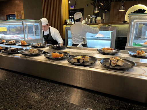 A esteira de comida é um dos destaques do Ryuji Sushi. Sempre abastecida com opções frescas e variadas, é realmente impressionante e funcional. No entanto, o design do balcão deixou a desejar. Ele não possui espaço adequado para acomodar as pernas, o que pode ser desconfortável, especialmente para pessoas mais altas. Como resultado, sentar ali pode ser uma experiência um pouco apertada.