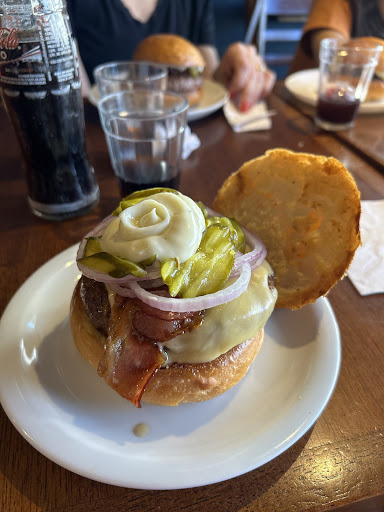 Read moreO burger da Smoked é simplesmente espetacular — uma combinação perfeita de sabores e texturas. A carne veio suculenta no ponto certo, com queijo derretido na medida, bacon crocante, picles que equilibram perfeitamente a gordura com acidez, cebola roxa fresca e um toque de maionese que parecia uma flor no topo, literalmente. Cada ingrediente tem seu destaque, mas juntos formam uma harmonia que impressiona.