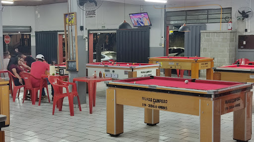 Dono Extremamente grosso e mal educado. Estava jogando com alguns amigos e ele veio e aumentou o som, o estabelecimento tem apenas duas caixas de som, e ficou bem auto e pedi pra diminuir um pouco e a resposta que tive foi "O pessoal gosta e vou fazer o que a maioria quer" dito isso de uma forma bem grossa, ok terminamos a partida e estávamos indo pro caixa e ele vaio junto discutindo ainda do som "O lugar é meu e eu faço o que quiser aqui", "O som coloco na altura e onde quiser, se quiser coloco na sua orelha". Realmente faz o que quer até afundar o local que o bar na frente com música antiga e mais baixa não dava nem pra passar na rua...