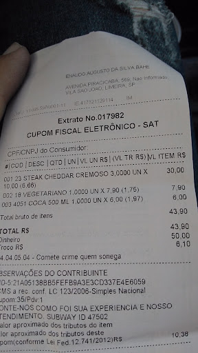 Read moreBoa noite. Já visitei algumas lojas Subway em vários países e posso justificar a minha classificação pelo facto de ter notado pouco entusiasmo na equipa que nos atendeu, na pouca diversidade de produtos disponíveis e no Marketing visual que deveria ser mais apelativo e acolhedor. Uma loja que pretenda conquistar clientes precisa, nos tempos que correm, de pautar pela diferença e originalidade e obviamente pela qualidade e preços dos...