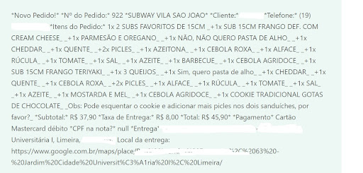 Primeira e úlltima vez que peço um lanche neste estabelecimento! Fiz o pedido online pelo site que o whatsapp deles indicou. Aguardei pacientemente por mais de uma hora e o pedido não chegou. Entrei em contato com a loja via whats e ninguém respondeu, aí liguei para dois números (whats e fixo) e ninguém atendeu. Depois fiz uma ligação pelo whats e finalmente alguém respondeu. E pra minha surpresa o site não enviou o pedido para a loja. Mandei um print do pedido e perguntaram se poderiam fazer o pedido o que foi aceito logo em seguida. Depois de muito custo (duas horas), o pedido finalmente chegou. Isso é um descaso total com o cliente. NÃO irei pedir novamente e NÃO recomento este estabelecimento. Segue a foto...