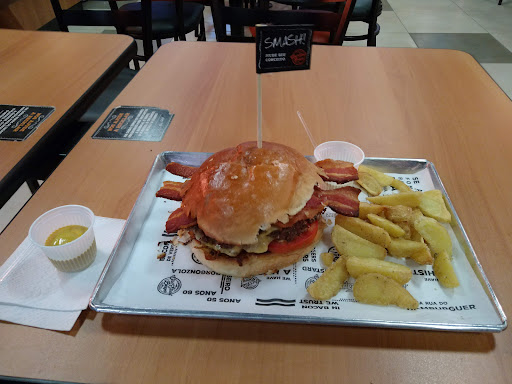Minha avaliação de primeira visita: Sensacional! Experimentei o lançamento Smash. Bacon crocante.😍. Uma maionese deliciosa 😁. Pão com leve crocancia e hambúrguer saboroso e bem feito. Outros molhos ficam disponíveis em cima do balcão. Quanto a porção de 100g de batata rústica para acompanhar o lanche: divina. Tudo isso e mais um suco Delvalle, 35,00. O local é bem atrativo, descontraído e aconchegante, limpo; atendimento muito bom. Rápido atendimento. Vale a pena...
