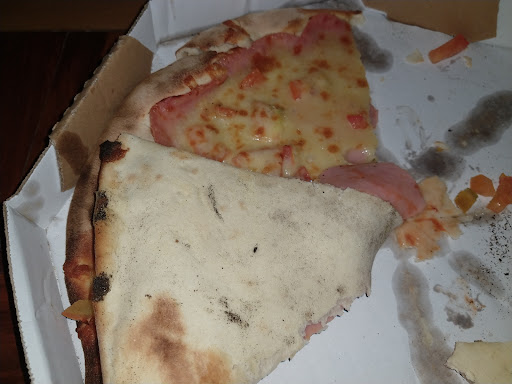 Read more[Pedido feito pelo app] Três horas de espera. Afirmaram que coloquei o endereço errado - mentira. Tive que ligar diversas vezes. Não me retornaram nenhuma das ligações. As pizzas chegaram em duas entregas diferentes. Frias, cheia de fuligem preta, cruas (de colar no papelão da embalagem). Tristes de dar dó. Sem qualquer selo de segurança. Dos tomates da pizza, só os bicos verdes e sem gosto. Cheguei a ficar com pena do dinheiro que gastei. Barata, mas sofrível. Não vale pela falta...