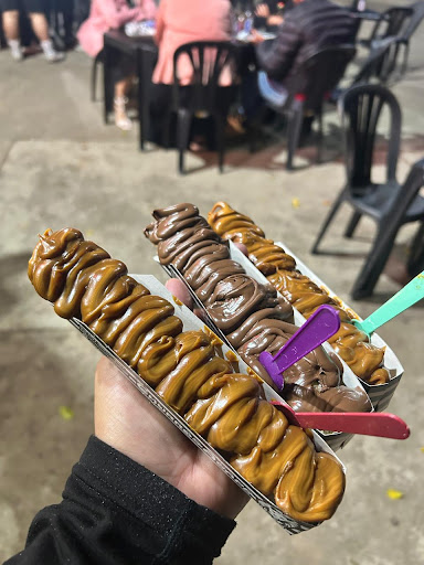 Read moreChurros sempre feitos na hora e sempre muito crocantes. O recheio é delicioso e pode ser considerado o melhor churro que já comi na vida. Grande variedade de formatos e sabores. Não recomendo ir quando estiver chovendo, o local fica a céu aberto. Há cadeiras e mesas para...