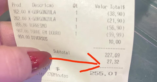 A Dono/Gerente ficou bravo ainda pois pedimos a remoção da taxa, começou a gritar e nos constranger em frente a todo mundo, sendo que estávamos dentro do nosso direito assegurado por lei. Ele ainda para não retirar a taxa disse que era do estabelecimento pois eles oferecem playground para as crianças (o qual estava com uma placa de gratuito) e segurança (o qual ele contratou e é de responsabilidade dele pagar pelo serviço de segurança do estabelecimento dele) e mesmo que a taxa fosse "referente o estabelecimento" a mesma deveria ser informada claramente ao cliente para que fosse uma...