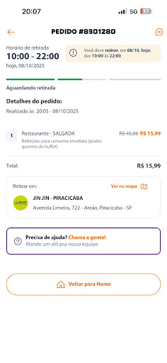 Read moreFiz uma compra no food to save, duas sacolas de 45 reais que saíram por 15, uma hora e meia depois chega uma única marmita, gelada ( sendo que no aplicativo dizia quente) com 4 pedacinhos de frango e arroz, somente isso!! É vergonhoso pq gastei quase 50 reais e se eu tivesse pedido um prato novo viria mais comida que isso, eu pesei a comida, veio 350g, 50 reais em 4 pedaços de frango e arroz, se não querem cumprir com o que o aplicativo se dispõe, não vendam caramba, mas fazer uma coisa dessa é vergonhosa, não recomendo mais pra ninguém, mostrei para as minhas amigas e disseram ter experiências parecidas, nunca mais compro nada deste lugar, nem no aplicativo e nem no shopping,...