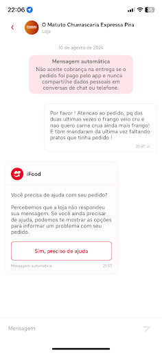 Read moreAtendimento péssimo principalmente atendente e gerente do dia 10/02/25, fiz o pedido 11h15 e as horas passando 12h10 nada ainda e pessoas que tinha acabado de fazer pedido estava retirando e nada de chamar o meu, eu estava com uma criança e uma pessoa gestante e eles nem se importaram fui pedir devolução para cancelar atendente falou que não fui até o gerente falei que fazia tempo do pedido ele fez pouco caso só quis entregar o prato e ainda nem pediu qual era meu pedido só me deu prato de a parmegiana e falou pronto sendo que era 2 pratos e 1 de salada, péssimo nunca mais como aqui sem consideração nenhuma seila onde foi parar meu pedido eu com uma criança e uma gestante, eles nem aí e ainda fala que não posso cancelar. Se eu não fosse até o balcão nunca ia ficar pronto...