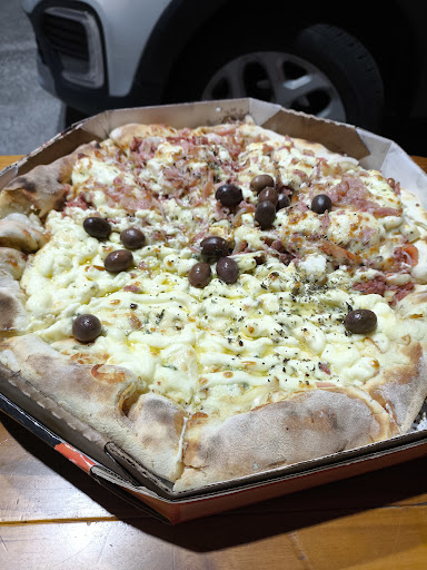 Read morePizza horrível. É a segunda vez que pedimos. A primeira estava ruim, ingredientes de péssima qualidade. Mas demos uma segunda chance, achando que pudesse ser algum problema pontual. A segunda vez foi pior. Fui pegar a pizza, fiquei esperando ela ficar pronta e comi na hora que cheguei em casa. A pizza estava gelada! O que que eu fiquei esperando na pizzaria? Ela esfriar??? Palmito duro, Bacon roxo, ingredientes mal cortados, não sei como eles cortam o ovo daquele jeito, não é com faca. Borda de requeijao de graça. Melhor não pedir. Requeijão translúcido e com gosto ruim. Meu marido passou mal a noite....