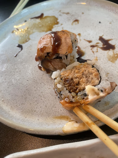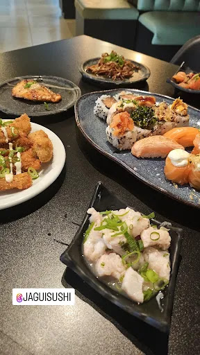 Read moreVou começar falando sobre a parte boa (que realmente é muito boa): A comida é extremamente saborosa e bem preparada, realmente o lema de pouco arroz e muito recheio é praticado no restaurante e faz toda a diferença. Fomos ao almoço experimentar o rodízio, que é antecedido de um menu degustação para que os clientes conheçam os ítens do rodízio. Todos são muito bons. O sabor e qualidade são de alto nível. Os atendentes muito atenciosos e prestativos. O ponto negativo, que na nossa opinião foi muito sério, é que o ambiente onde ficam as mesas onde os clientes sentam-se para comer fica totalmente tomado pelo cheiro vindo da cozinha... nós saímos de lá com um forte cheiro de gordura nas roupas, braços, cabelo e calças. Pra nós que saímos do trabalho e fomos almoçar lá foi muito ruim, pois tivemos que voltar ao trabalho com aquele cheiro impregnado que não saiu durante o resto do dia. Foi bem desagradável retornar ao trabalho naquelas condições. Pessoas que não haviam ido (inclusive clientes) sentiam o odor exalando e perguntavam que cheiro estranho era aquele. Ficamos na parte de baixo do restaurante, não sei se no espaço de cima também ocorre esta situação. Precisam providenciar com urgência um sistema de exaustão na cozinha mais eficiente/eficaz para acabar com esta situação desagradável. Com certeza voltaremos pela segunda vez, pois de fato a comida japonesa do Jagui é muito boa e diferente dos demais restaurantes da cidade devido ao "pouco arroz e muito recheio". Espero que na próxima vez este problema esteja solucionado, para que não desistamos e possamos retornar mais vezes e, também, para que eu possa alterar a classificação...