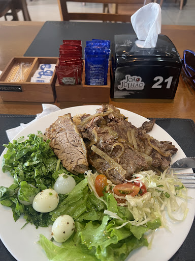 A comida é boa, há variedade de opções e os funcionários são atenciosos, porém o treinamento de novos funcionários é péssimo! Nosso pedido não foi passado à cozinha e depois de cobrar três vezes, notando que outros clientes que chegaram depois já estavam recebendo seus pratos, reclamamos com outro garçom que nos notificou o ocorrido e garantiu agilidade para resolver o problema e providenciar os pratos (2 hambúrgueres). Resultado: pedimos para cancelar e fomos informados que já estava a caminho. Ainda demorou 10 minutos. Mais de 1 hora e 30 minutos para 2 sanduíches. E o local bem estava cheio. Infelizmente, há poucas opções na cidade. E justificaram qua tudo isso ocorreu por erro de uma...