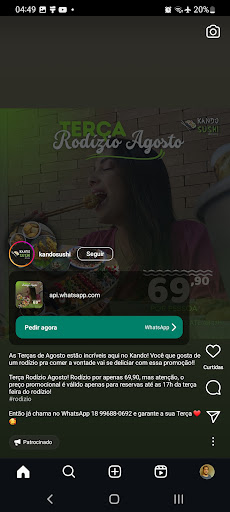 Read morePéssima! Primeira e última vez Fui com minha filha no almoço e pedimos rodízio, de início estranhamos pois tinha só 1 cliente no local Quando atendida a moça nem explicou sobre como era servido o rodízio e se poderiamos pedir de acordo com o nosso gosto Vieram 2 pratos com ceviche 1 pratinho de saint peter(o único que estava bom) E uns 10 mini harumaki de queijo 1 bowl de sunomomo 4 bolinhos de peixe Anel de cebola que não constava no rodízio E 22 sushis apenas(que estavam por sinal com gosto de velho) Quando estavamos comendo os sushis minha filha achou um bichinho em cima de 1 deles Chamei a moça e separei o sushi Falei baixinho pra ela que tinha um bichinho (nesse momento havia 2 clientes) Ela foi até a cozinha e voltou com a resposta que era um pedaço de alga Tanto eu quanto minha filha vimos o bichinho e suas perninhas gente Como pode? Deixamos de comer o restante do prato e vimos que não vinha mais nada Chamei ela e perguntei das coisas que não tinham vindo ainda e ela me disse que era pra evitar desperdícios Como? se nem vinham os outros pratos do "rodízio" Quis dar uma chance ainda e pedi para trazer mais saint peter(que tinha sido servido), shimeji e sushi hot que não tinham vindo ainda Passaram 20 min e não veio nada Levantamos , reclamei das coisas a menina fez uma careta quando falei do bichinho ela me disse que as coisas estavam saindo falei que não queriamos mais Pagamos e fomos embora! Nunca mais e não recomendo...