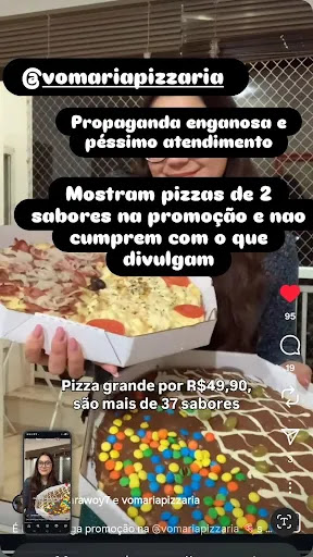 Assisti ao vídeo publicado por vocês no Instagram sobre a promoção de pizzas por R$ 49,90, no qual são exibidas pizzas divididas em 2 sabores. No entanto, ao tentar realizar o pedido, fui informado de que a promoção vale apenas para pizzas de um único sabor.