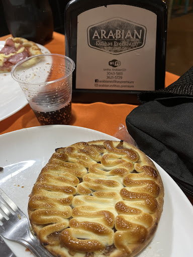 Read moreAs esfihas não são ruins, o tempero é bom e elas vem bem recheadas. Porem creio que alguns sabores são mais uma aberração culinária do que verdadeiros sabores. Acho que quando seu restaurante se chama “Arabian Esfihas Premium” você deveria entregar um serviço premium, algo que este estabelecimento não foi capaz de fazer. Já que o restaurante fica com as mesas a céu aberto, uma receita pro desastre quando chove, estás que junto com as cadeiras são de plástico um material nada premium. O local parecia mais um boteco de esquina, não que isso seja um problema, mas não vai de encontro com a realidade premium que é vendida com o nome. Talvez o nome seja em referência às esfirras, porém elas não tem nada de mais, como já comentado são boas mas nada fora desse mundo. Acho que é bem melhor pedir pra comer no conforto da sua própria casa do que ir...