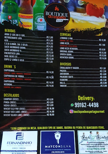 Local descontraído e ótimo para encontrar os amigos. O local é aberto, as mesas ficam na calçada, no verão é ótimo mas no inverno é bem frio e vento. A cerveja é bem geladinha e o preço é justo, e os espetinhos são muito bem servidos e saborosos além de ter um preço muito justo. O espetinho de frango com bacon e catupiry é uma delícia! No inverno tem caldo de mandioquinha com linguiça e bacon por R$15,00, acompanha pão, queijo ralado e molho de pimenta. O caldo é uma delícia e uma ótima opção para se esquentar num dia frio.