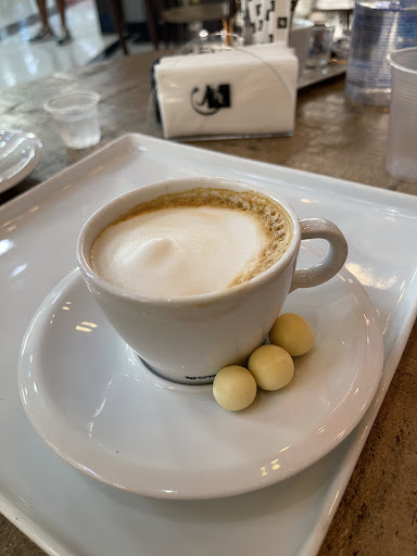 Aproveitamos a oportunidade para conhecer a Cacau Show Mega Store, eu realmente estava curiosa em experimentar o capuchinho deles! O espaço é bem acolhedor e excelente para um bate-papo, um cafezinho, um docinho ou mesmo um sorvete, eles tem um cardápio virtual (odeio!!!)bem interessante. Os pedidos podem ser feitos no autoatendimento, bem interativo é fácil de usar, ou diretamente no caixa. Pedimos um cafezinho tradicional e um capuchinho. De boa…. Esperava algo bem melhor pelo preço…. Tanto o café como o capuchinho vieram meio frio…. Decepcionante. Pelo menos a atendente que nos mostrou e explicou o cardápio do autoatendimento era excelente!! Ela os salvou de...