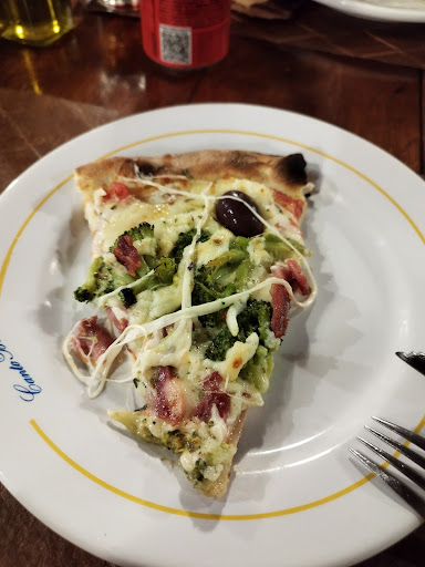 Read moreVamos ser sincero, foi bom em partes, ambiente legal, poderia ser climatizado, mais tudo bem, vamos que interessa, pra conecar do vinho, minha esposa pediu taça de vinho, parece adega de vinhos estava acabando, se colocaram dois dedos de vinho no copo foi muito, e o vinho super quente parece que saiu junto com pizza do forno, a pizza até gostosa, mais a metade só tem bordas queimadas. Pedimos meia 4 queijos e meia baiana, mais parece que a baiana nunca foi baiana, sem uma pimenta pra arder e sentir sabor....mais sinceramente, tem muitas pizzaria boas...