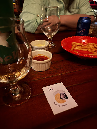 Read moreAmbiente bonito e aconchegante, mas o atendimento deixa muito a desejar. Passamos mais de 40 min no lugar e só conseguimos beber UMA cerveja nesse tempo (nota-se os copos vazios na foto). A comida é boa, pedimos uma porção de batatas e era bem temperada, aioli delicioso. E uma burrata, bem servida, mas até os pratos chegarem o prato/molho já estava frio. De sobremesa pedimos o Franuí Dodo, achei um tamanho ótimo para dividir, bem doce,...