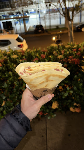 Read morePedi um salgado para minha esposa que estava morrendo de vontade, e aproveitei a viagem pq moramos do outro lado da cidade e pedi dois crepe doce de Nutella, foi aí a maior decepção da noite. Pura massa, abri o crepe e raspei com uma colher, não deu uma colher de Nutella o crepe todo. O da minha esposa era com morangos, tá aí na foto. Morangos cortados em finas camadas, parecia carpaccio, parece que com um mesmo morango fizeram uns 5 crepes. Não deu uma colher de Nutella que tiramos do crepe para comer puro, só veio massa. A nota dois ainda foi pelo salgado. Isso aconteceu na unidade da praça...
