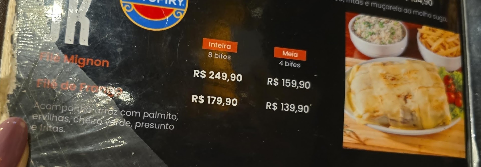 Quanto a comida, pedimos um JK file mignon, postei a foto do cardapio para que possam ver como estava descrito o prato x o que veio. A comida em si estava gostosa, mas… 1- uma parte da carne estava muito vermelha (aparentando cru) 2- tenho quase certeza que isso nao era file mignon, alem disso a carne estava extremamente fina, quase um papel 3- ao ler a descrição do prato imagina-se que vira bife de mignon com queijo EM CIMA, acompanhado de um potinho de arroz temperado com palmito, ervilha, presunto e cheiro verde e um pote com fritas, certo? Ou estou muito errada e nao sei ler portugues? Porem o que me foi servido foi um bife fino EMPANADO e RECHEADO com pelo menos 4/5 fatias de presunto BANHADO no queijo. Posso afirmar tranquilamente que carne foi o que menos tinha nesse prato…estava mais para um empanado de presunto e queijo com uma tira de bife. Minha mae foi comentar com o garçom que eles precisavam especificar melhor no cardapio como era o prato (informar que era empanado e recheado) e ele respondeu “é, ele é recheado, peço desculpas POR VOCES NAO TEREM ENTENDIDO A DESCRIÇÃO DO PRATO” 🤡🤡 Agora pergunto aqui, o que esta descrito...