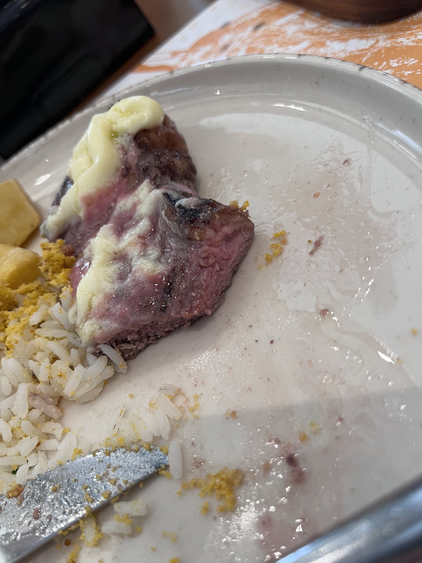 A picanha não estava macia como era de se esperar, ou ela foi manipulada (corte) de forma errada ou era de média/baixa qualidade. Além disso, o catupiry, que não era catupiry, era de qualidade mediana. A quantidade de farofa e vinagrete fornecida no prato não era compatível com a quantidade de carne oferecida, pedimos mais, mas não veio. O arroz estava bom, bem como a mandioca frita.