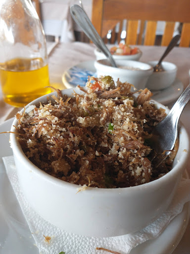 O prato: muiito bonito, e só isso. uma paçoca de carne seca temperada, mas sem coentro. Não perguntei o pq, mas tb já conheço o motivo: em SP esse tempero não é muito apreciado, infelizmente. Mas é uma paçoca nordestina e portanto quem não gosta é que deveria se adaptar. Não tem nada de especial. A carne não é tão fritinha, está mais pra cozida. Eu tenho como parâmetro um restaurante maravilhoso no centro de SP que tem uma paçoca dos deuses; essa não chega nem perto.