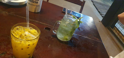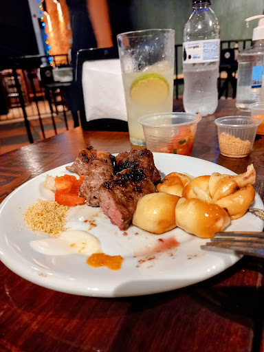 Vou falar por parte: Pedimos vários espetos e uma porção de frango acebolado. Porém, as bebidas deixam muito a desejar, pedimos um mojito, que veio um "suco de hortelã" de R$20,00, quando pedi para reforçarem, por que não senti o gosto do álcool, queriam me cobrar uma dose de R$10,00! O mesmo aconteceu com as caipirinhas de maracujá, que hoje até 22:00 estavam pela metade do preço de R$20,00 por R$10,00, mas, acho que colocaram metade da quantidade de álcool também! Pedimos para prepararem mais uma um pouco mais forte e recebemos "vou fazer do jeito que eu quiser" do barmen! Na mesa que estávamos, não dava para ouvir a música ambiente e do jeito que estava, assim ficou! A tela escura, se alguém quiser assistir algo, vai passar raiva! A comida é até boa, por isso é a única coisa que merece 3 🌟! Então, ficamos sem álcool nas bebidas, sem música ambiente, e com uma péssima 1ª e última impressão do lugar. Obs: Quero dizer que os garçons são excelentes, atenciosos e educados, 5 estrelas...