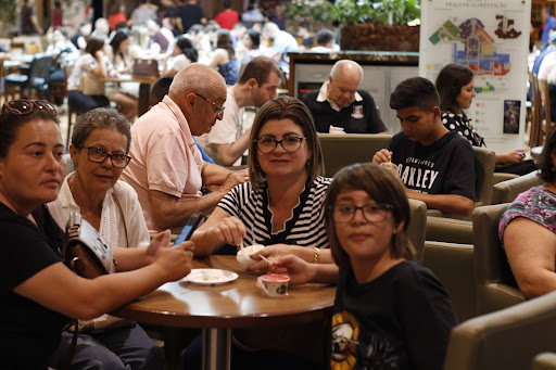 Sempre gostei de comer lá, mas sábado retrasado fiquei revoltado com a experiência que tive. Uma menina de uns 6 anos encostou para pedir comida, o gerente veio com uma fúria para tira-la, porém na hora que percebi falei para ele deixar (ela até se assustou), aí umas moças que estavam saindo e perceberam pegaram ela é levaram para comer salgado. Sei que eles não podem deixar, mas existem formas e formas de ser educado e acho que quando o cliente permite, não devem se opor. Insatisfeito o mesmo foi chamou os seguranças do shopping e fez a maior "ceninha" com seus garçons como se estivesse revoltado. Creio que falta muita compaixão e se não estivesse com meu Pai, iría chamar a segurança eu mesmo, e iría relatar isso. Ñ quero prejudicar esse Sr., mas precisa ser melhor treinado, e aprender o que é...