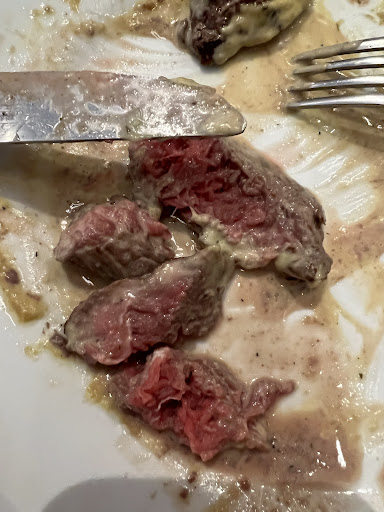 Read moreJá conheço o restante por frequentar as unidades de São Paulo a muito tempo , desde quando começou o L’Entrecôte de Paris , porém a quase e o atendimento da unidade Ribeirão Preto não condiz com as unidades do restaurante em São Paulo. Fomos dia 27/05 no almoço. Minha esposa pediu uma carne bem passada e veio ao ponto, eu pedi uma carne ao ponto e veio mal passada. Na minha opinião um restaurante que só serve um único tipo de prato com carne e consegui errar o ponto da carne, pode fechar as portas. Pois não sabe fazer o básico para trabalhar com carne. Além do ponto errado, notei que a carne estava dura e fibrosa, nessa questão somente a minha , pois a carne da minha esposa não estava dura, somente com o ponto incorreto. Reclamei com a garçonete ,a mesmo me ofereceu um sobremesa de cortesia , que não aceitei. Queria minha carne de forma correta , não sobremesa de cortesia. Segue foto da carne que era para ser ao ponto e veio...