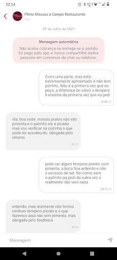 Read morePéssimo atendimento, falta de respeito total. Pedi meia porção de caldo de mandioca, 2 garçons confirmaram o pedido e na hora da conta descobri que foi mandada a porção inteira. Alegaram que eu teria que pagar a porção inteira, visto que eu tinha jogado cheiro verde na panela em que o caldo foi servido e, por isso, o caldo não poderia ser reaproveitado. Mesmo com a garçonete confirmando que eu tinha pedido meia porção, só corrigiram a conta, contanto que eu não levasse o que sobrou, e que, pelo fato de eu ter colocado o cheiro verde no caldo, o restante que eu levaria pra casa, seria jogado no lixo. Fiquei inconformada com a falta de respeito e com nojo de pensar que as sobras da mesa são reaproveitadas...não...