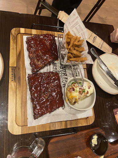 Read moreNo dia 12 de junho visitei o restaurante (dia dos namorados) e tive uma péssima experiência! Sendo reconhecida pelo gerente do estabelecimento, nos recompensando com um voucher pra retornarmos em uma próxima ocasião. Hoje dia 11/10 fizemos um pedido para entrega através do Ifood do qual foi: 1 costela desossada (Royal cheese Ribs) 1 costela com molho (Ribs on the barbie) Acompanhamentos: Fritas Pétalas de Cebola (bloom petals) Maçã com canela (Ciannamon apple) Frango a passarinho (Kookaburra wings) 1 iced tea 500ml chá preto cranberry