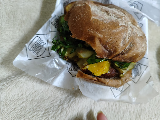 Os chopps estavam deliciosos, havia uma grande variedade de estilos e doses de degustação, então bebemos todas (literalmente), sendo que a que mais amamos foi a dark sour de chocolate com pimenta e a sour de goiaba. A casa também serve uma variedade incrível de comidinhas, com bastante opção vegana e vegetariana; pedimos hambúrgueres (R$25-35), que acompanhava fritas rústicas e só melhorou a nossa noite ali.
