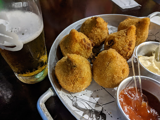 O local é pequeno e lota rápido, então recomendo chegar assim que abre. Há mesas externas e internas, uma jukebox, o balcão com as taps obviamente, e às sextas costuma ter uma banda convidada tocando. Fomos em 2 ocasiões, sexta e sábado, e como o lugar estava lotado, os garçons estavam correndo pra lá e pra cá, então era necessário paciência para ser atendido.