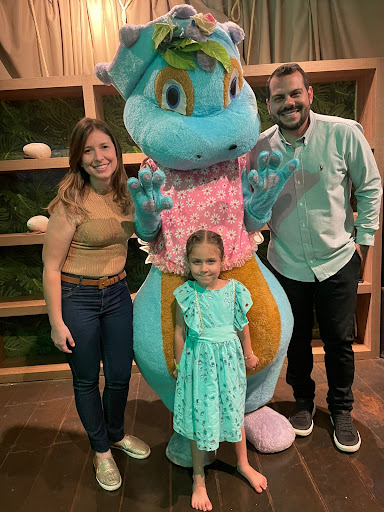 Read moreReservei para o aniversário da minha filha de 3 anos, mas nunca tinha ido ao restaurante. Bem, o lugar tem uma ótima temática, já na entrada é surpreendente o tamanho da réplica de dinossauro. Tudo lá remete ao mundo dos dinossauros. Fomos bem atendidos ao chegar, estava decorado pro aniversário. Pois bem fui levar minha filha ao piso superior onde fica a área kids. Ela amou e já foi brincar, eu fiquei preocupada com a escada e perguntei se deixavam as crianças descerem sozinhas. A monitora me olhou e não soube me responder e chamou outro monitor. Desci um pouco apreensiva. Minha filha não ficou 10 minutos lá e entrou em desespero. Buscamos ela e aí ficou bem. Fica muito separado dos pais, esse é um ponto negativo no caso de crianças menores. Até aí tudo bem. O problema é o serviço na alimentação. Servem tudo em pequenas cumbucas com porções minúsculas. E demoram demais para servir outra coisa. O cardápio que vi. Não condizia com o que foi servido. E tínhamos que ficar implorando. Aí diziam que precisavam dos potinhos( não tinha o suficiente). Muitas coisas do cardápio não foram servidas e se tratando de um rodízio foi frustrante. A apresentação da noite é demasiada longa e cansativa. E pra piorar colocaram um dinossauro realista e assustador no meio das crianças que ficaram apavoradas( nem todas) mas acabou com o dia da minha filha. O apresentador até soltou um "socorre aqui gente" para ajudar uma criança em pânico no palco. Acho que a ideia do restaurante é ótima e inovadora, mas mal executada. Esperava muito um dos dinossauros fofos para cantar parabéns, masss... Espero que repensem um pouco...