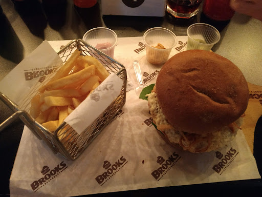 Read moreAtendimento rápido e eficiente por parte da hostess e das garçonetes, estas sempre simpáticas, o refrigerante e a cerveja gelada chegaram rapidamente em nossa mesa, porém a demora em trazer os lanches não se justifica, foram cinquenta minutos para que chegassem até nós, sobre o meu sanduíche O Ogro a carne estava bem suculenta e os acompanhamentos do hambúrguer estavam ótimos, o pão australiano era gostoso mas um pouco seco para o meu gosto, o hambúrguer Da Casa que minha esposa comeu estava igualmente gostoso porém um pouco picante de mais por conta da geleia de pimenta. De um modo geral é uma boa hambúrgueria, porém alguns itens poderiam ser mudados, a demora em sair os lanches chega a ser irritante, o barulho do salão é muito alto, com um piso de madeira e algum revestimento acústico isso poderia melhorar, sentei em uma mesa na janela ao lado dos banheiros, estes não haviam molas nas portas, constantemente as pessoas que utilizavam deixavam as portas abertas, com todos os odores sendo projetados para dentro do salão. A visão que temos da fachada da hambúrgueria passa um ambiente mais intimista, com luz baixa uma decoração mais industrial, mas quando entramos mais parece um bar, com piso cerâmico claro, paredes extremamente "grafitadas" e iluminação muito forte, parece que faltou um profissional em arquitetura e decoração para auxiliar neste quesito, voltarei ao brooks hambúrgueria para experimentar outros hambúrgueres mas não voltarei mais em um sábado a noite, por conta da demora na entrega dos...