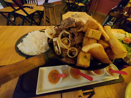 Pedi uma porção de contra filé na chapa. Veio super rápido. Mas veio uma porção feita de qualquer jeito e muito pequena para uma porção inteira. Precisaria de uma porção por pessoa para matar a fome. Totalmente incompatível com o preço. Embora a carne fosse macia, veio com um leve gosto de queimada, como quando coloca em uma chapa muito quente ou uma chapa não muito limpa. Eu realmente não recomendo. Pedimos também uma porção de provolone a uruguaia. Esta veio boa, até muito boa comprando com a carne. Recomendo. A música, no dia, era ao vivo e muito boa: rock internacional. Talvez como o nome sugere "Chopperia Rola Papo", rola chop e papo, mas a a...