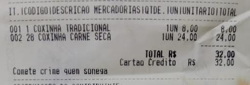 Read moreAs coxinhas são bem saborosas, bom tamanho, bem recheadas e o recheio é bem temperado, acompanha um molho a parte apimentado. A maioria dos preços variam entre 8-11 reais(para tamanho padrão, não mini). As poucas opções caras são as premium que tem recheios diferenciados(camarão, carne seca etc.). Muito bom,...