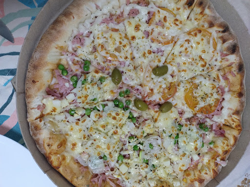 Read moreBem, pedi uma pizza sem Bacon pq não posso consumir esse alimento, e veio errada... Até aí td bem pq eles fizeram outra. Porém a pizza não estava tão boa. Não é ruim, mas tem melhores na cidade, pelo mesmo preço. O "catupiry" é péssimo, parece um creme de maizena, e a pizza 4 queijos parece que só tem isso e mussarela, mais nada. A pizza mais barata é 27,50, e não tem lugar para sentar. É pegar e ir pra casa. No dia que eu pedi, pedi uma meia quatro queijos, meia atum. Espero...
