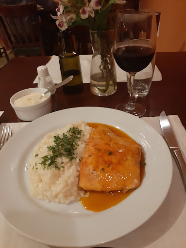 4 - Prato principal chegou as 22:40. Minha esposa escolheu Ancho neste não foi perguntado ponto da carne (maioria da mesa escolheu este prato e não comeu pois não gostam de mal passada) batata e arroz extremamente salgados. Sensivelmente os acompanhamentos são industrializados (enlatados). Eu pedi Badejo a molho de camarão. O badejo estava com espinhos e capa de gordura. O risoto de parmesão estava bom porem já gelado.