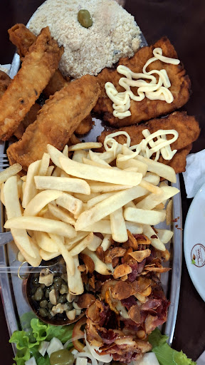 Fazia um tempão que eu nao ia até este restaurante que foi o restaurante da minha infância. Minha família costumava almoçar lá aos domingos. Lembro que tinha um garçom muito simpático, o Soró, que parece que já faleceu. Os donos será que são os mesmos? Era de uma família também. Pedimos o peixe especial do Done, e é o mesmo prato que costumávamos pedir. O que mudou é que agora as guarnições ficam no buffet junto com as saladas e eles também têm rodízio por R$75,00 se eu não me engano. O valor do prato que pedimos acho que foi R$200. Muito bem servido, para até 4 pessoas comerem bem. Veio dourada frita, filé de peixe a milanesa e um pedaço de lombo. O restante dá pra ver pela foto. Acompanha um molho de amêndoas, champignhons e alcaparras. Tudo muito gostoso. Pedimos uma cerveja original e uma água com gás....