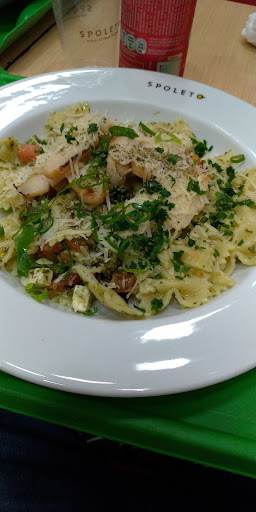 Read moreSpoleto oferece as tradicionais massas italianas e seus deliciosos molhos. Você escolhe o tamanho da porção, os ingredientes, o sabor do molho, e, ainda pode gratinar ou não. Sempre gostei, mas infelizmente com o passar do tempo, alguns itens mudaram ou não são mais servidos. Por exemplo o palmito, não é mais servido, e o ovo de codorna atualmente é partido ao meio. Há também opções após o prato servido , como: queijo parmesão ralado, torradinhas, cebolinha, manjericão. Gosto muito, mas por ser na praça de alimentação do shopping, o próprio restaurante oferece apenas 4 mesas e uma bancada para 4 pessoas. Não muito aconchegante. Mas, a comida compensa todos os pontos...