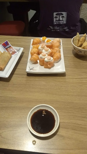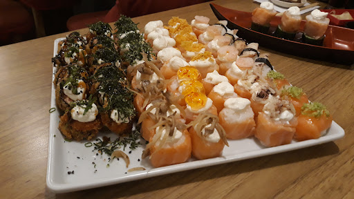 Lugar compacto, tem a parte que serve as porções e combos de sushis e uma parte de buffet. O sabor dos sushis no geral é muito bom, mas verifiquei que boa parte ou quase toda dos sushis de salmão comuns é feito com salmao triturado, o sabor é bom mas para quem repara nesses detalhes talvez seja relevante avisar. Além disso o arroz achei que amassam bastante, o sabor como já disse não perde por isso mas para mim que estou bastante acostumada a pedir e comer sushi faz bastante diferença na testura o arroz do sushi amassado daquele jeito. Os valores das porções são bons, dá pra se alimentar bem pagando um pouco menos que um preço de rodizio comum em outros lugares, o atendimento foi rapido, o local talvez perca só nos bancos que além de serem ruins de apoiar os pés, não possuia encosto, o sabor da comida nao perdeu em nenhum momento, os sashimis me pareciam bem frescos e a comida só perde naqueles detalhes pequenos que acredito que pra muitos pode não ser relevante. Então é...