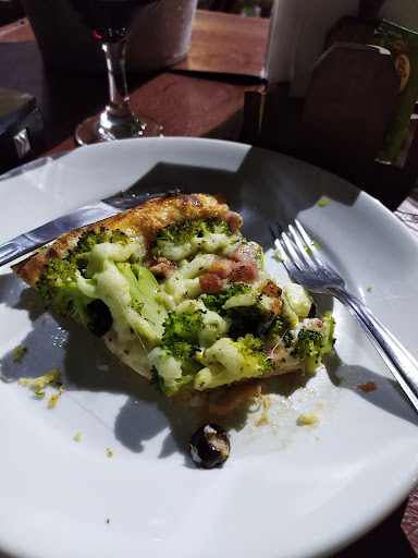 Read moreA massa da pizza é boa, peguei a campeã da casa (Brócolis com Bacon). O vinho da casa também achei bom, porém foi servido a taça cheia até próximo da borda, o que não deu pra fazer a aeração e sentir o aroma e a qualidade do vinho.